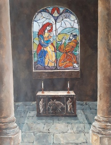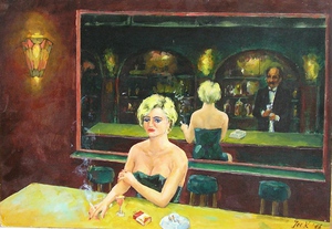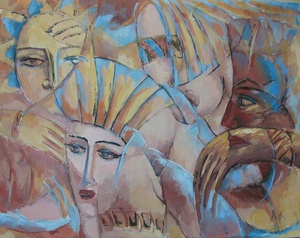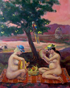 2010Twee zwangere vrouwen gesitueerd in een idyllische sfeer. Onderdeel van een drieluik.