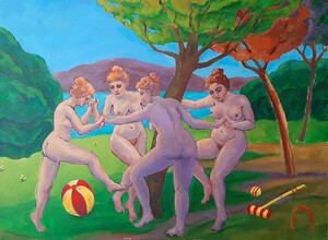 2010Twee zwangere vrouwen gesitueerd in een idyllische omgeving. Onderdeel van een drieluik.